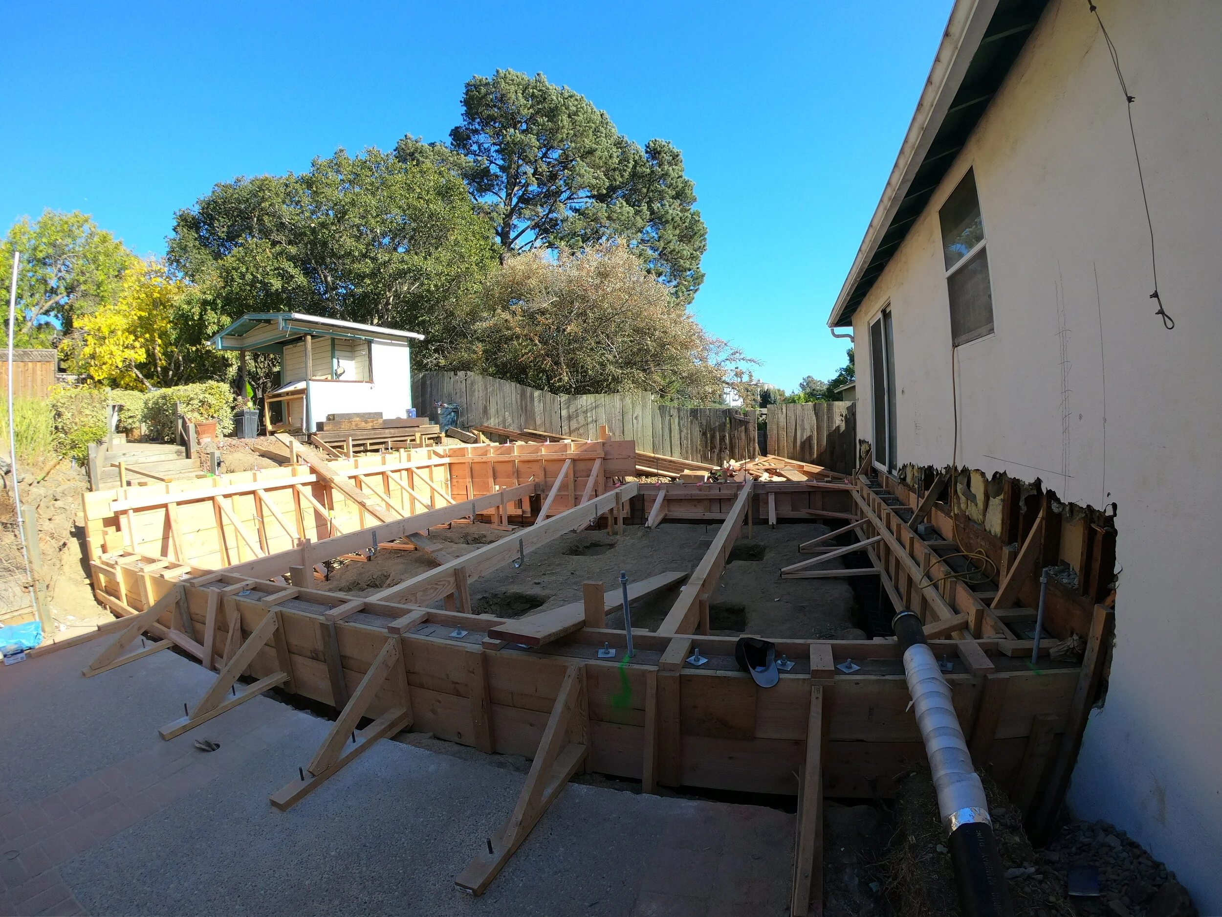 This is a House in San Carlos, Ca. We excavated trenches for new foundation and piers. Preparation is key before the pour of new concrete.
